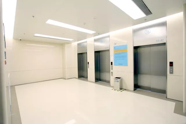 在人流密集的位置,如電梯、過道中央、出入口等地方,一般接觸、踩踏的頻率較高,院方也用心的將榮冠石材應用在墻壁、石柱上面。榮冠崗石的硬度高,更加耐磨損,能夠很好的適應這些區域的應用。