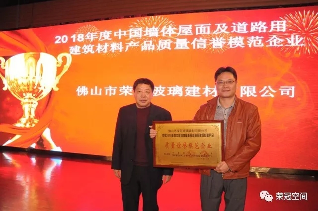 近日,“2018年全國墻體屋面及道路用建筑材料產品質量國家監督抽查、重點企業檢查分析總結會暨綠色發展論壇”在西安召開。榮冠建材在會上被授予“2018年度中國墻體屋面及道路用建筑材料產品質量信譽模范企業”榮譽稱號。