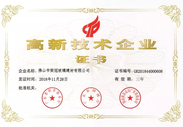 廣東省科學(xué)技術(shù)廳、廣東省財政廳、國家稅務(wù)總局廣東省稅務(wù)局,于4月26日發(fā)布了《廣東省2018年高新技術(shù)企業(yè)名單的通知》。佛山市榮冠玻璃建材有限公司(簡稱“榮冠公司”)憑借產(chǎn)品實力、自主研發(fā)水平、科技創(chuàng)新能力得到認可,被認定為“2018年廣東省高新技術(shù)企業(yè)”。