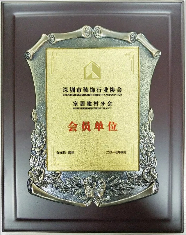 2019年7月1日,我司榮膺“深圳市裝飾行業(yè)協(xié)會會員單位”,并獲得相應(yīng)的會員證書及牌匾。