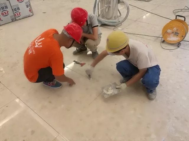 5.初步清潔附在板材表面的的污物,粘貼好的石材至少要十五天后(可根據(jù)專用人造石粘貼劑的使用說(shuō)明)方可進(jìn)行清縫、填縫處理(讓石材底部的水分充分排岀,如遇天氣潮濕時(shí)間要長(zhǎng)一些),收縫時(shí)應(yīng)使用專用人造石材填縫劑。