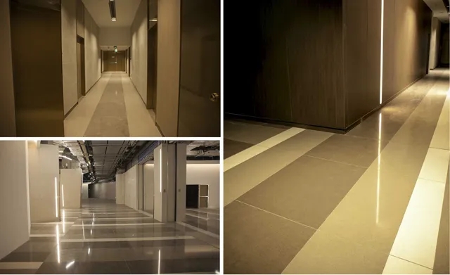 別出心裁的三色崗石鋪貼,地面平整度如一,使空間整體感大大增強,更顯高端大氣,與環(huán)境達到了很好的融合,讓人賞心悅目。