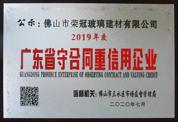 近期,佛山市信用管理協會對2019年度廣東省“守合同重信用企業”進行公示,榮冠公司憑借良好的市場信譽和優質的產品服務,順利通過市場監管部門的最終評審,并獲相應的榮譽牌匾和證書。在三十多年的誠信經營中,榮冠公司屢獲該項殊榮。