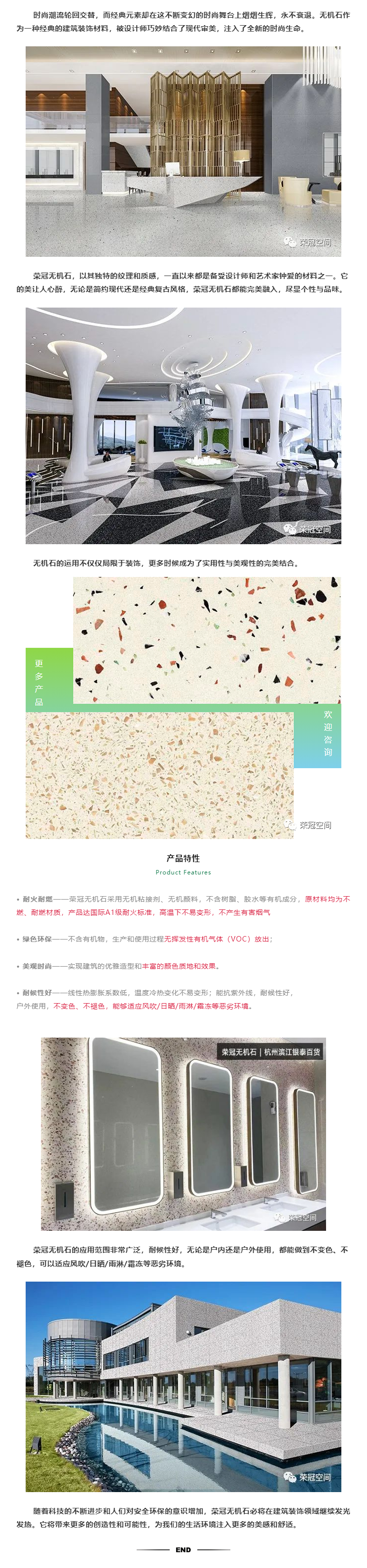 時尚潮流輪回交替,而經典元素卻在這不斷變幻的時尚舞臺上熠熠生輝,永不衰退。無機石作為一種經典的建筑裝飾材料,被設計師巧妙結合了現代審美,注入了全新的時尚生命。