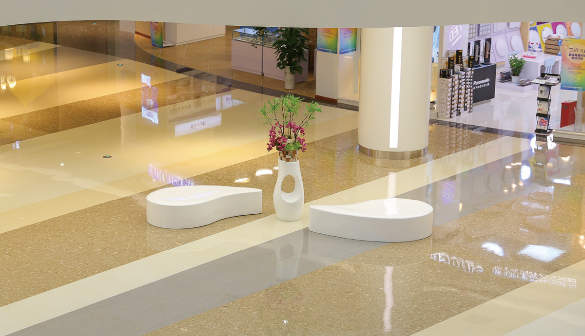成都富森美家居地址是武候區(qū)盛和二路18號,在成都市三環(huán)路與天府立交交匯處,緊臨成雅、成樂、機場等高速公路。營業(yè)面積達22萬平方米,共采用榮冠TR62、TR41、TR25、RB119、RB153等多種石材用于地面鋪貼,工程面積達到1萬㎡。