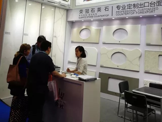 在展會現(xiàn)場,榮冠出口部工作人員向蒞臨展位的客戶講解了榮冠石英石臺面產(chǎn)品的品質(zhì)優(yōu)勢,與來自全球各地的嘉賓深入洽談合作。通過參觀展品和工作人員的介紹,現(xiàn)場有多位客戶表示出進(jìn)一步合作的意向。